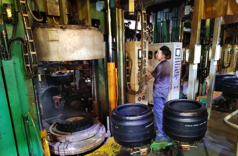 “在硫化這道工序里,時間、溫度、壓力每一個指標都需要嚴格把控,硫化結束后就是成品胎了。”在硫化車間,貴州輪胎前進特種胎分公司常務副總經理王勇說,這是最后一道工序,這批農用胎隨后通過公司的檢驗就可以銷往市場。